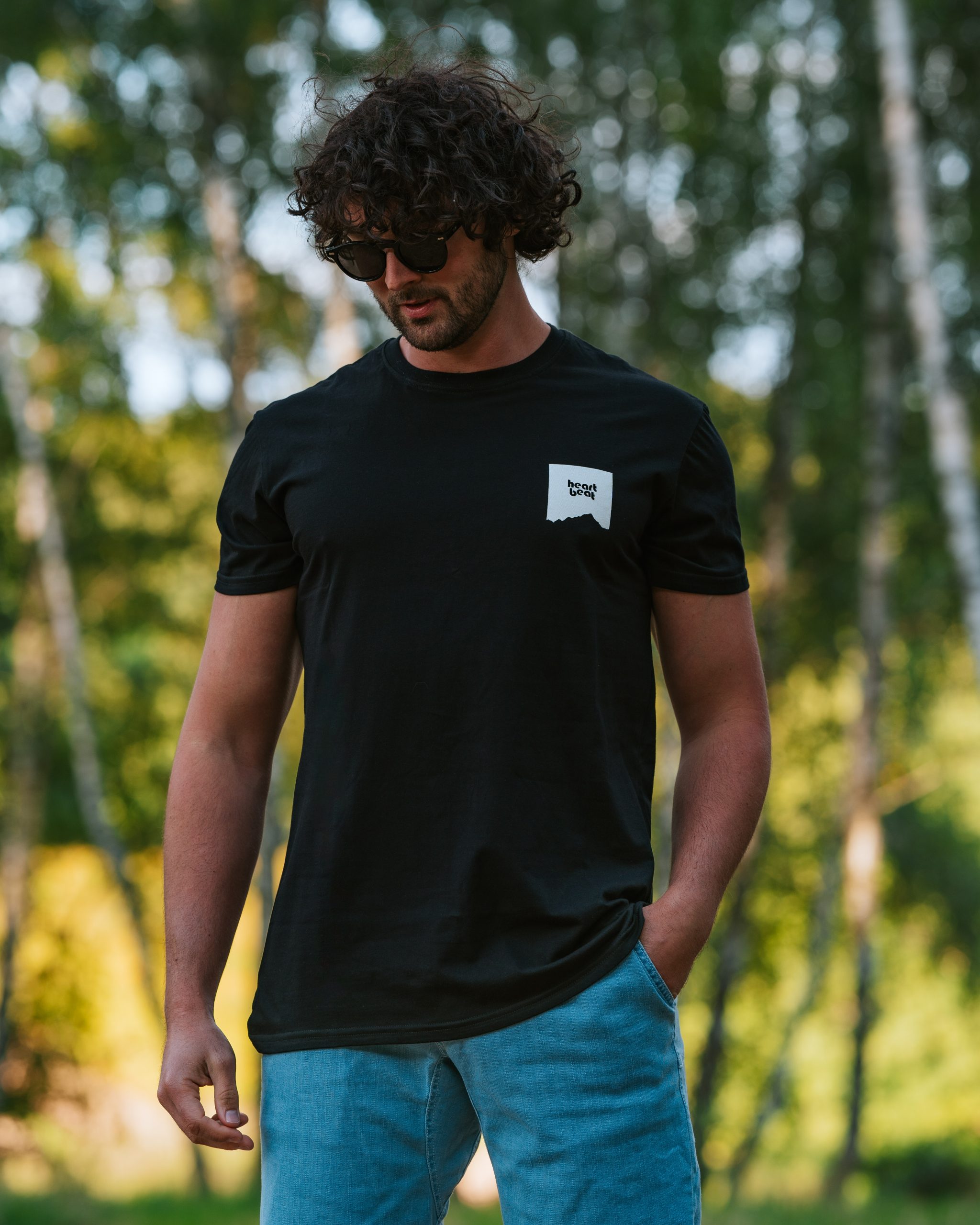 The graphic on the T-shirt is the Heartbeat logo and the outline of Mount Everest massif. An discreet graphic and a subtle reference to the characteristic mountain in Himalays, which ignites the imagination of all those who love mountains.