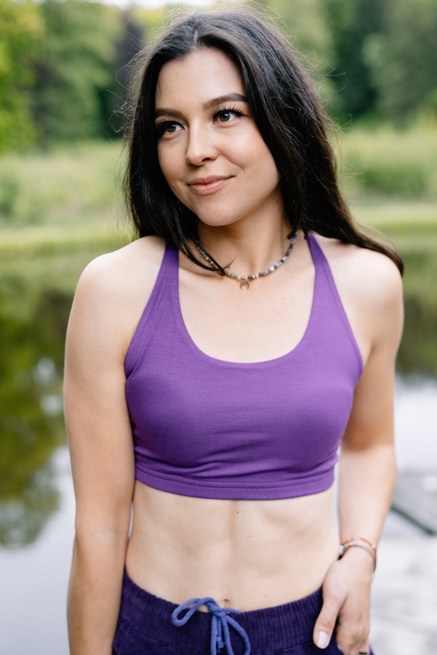 Made of viscose with admixture of elastane. Provides comfort and freedom of movement. The bra has a very nice and interesting design – good both for training, climbing in the rocks on warm days, and a calming yoga session.